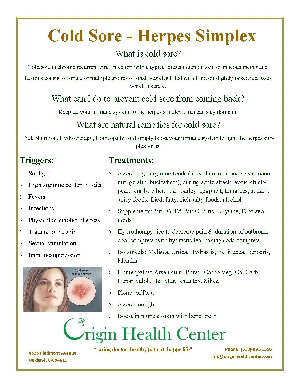 Supplements: Vit B3, B5, Vit C, Zinc, L-lysine, Bioflavonoids